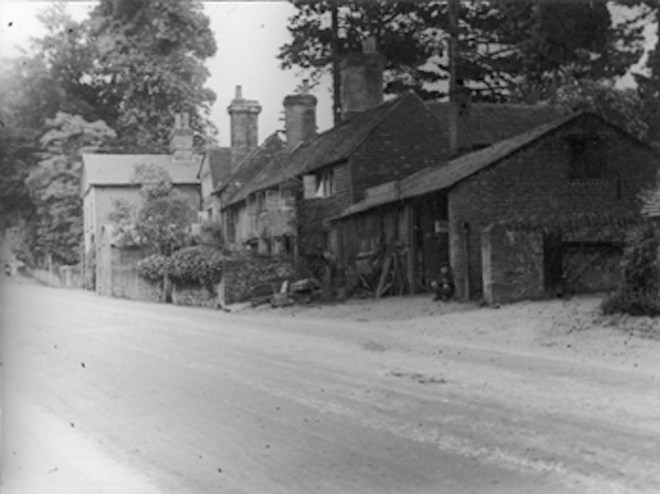 The Forge and Forge Cottages on Limpsfield High Street (not to be confused with Forge Cottage on Limpsfield Chart – Stoneleigh Road) were built in the late 1600s. The Forge itself (pictured) stood on the end of the cottages on the corner of Priest Hill by Memorial Stores until the 1930s, when it was finally demolished. The four tiny timber and brick/rubble cottages still stand, now painted white and black.