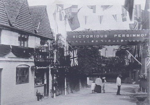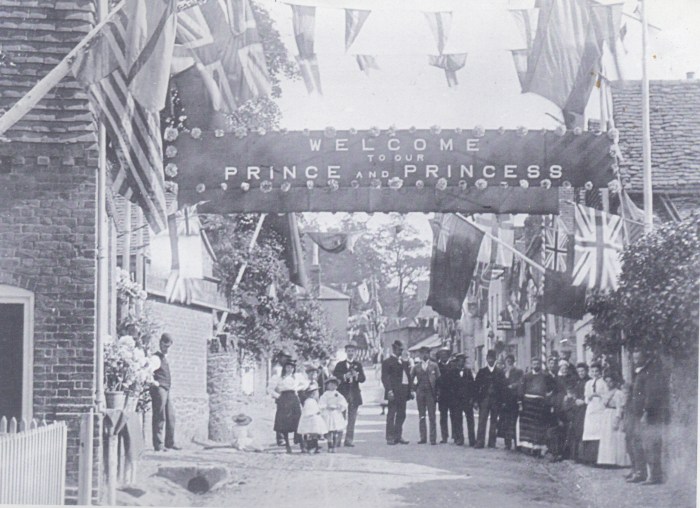Limpsfield residents remain in the street following the royal visit. The Bull’s landlord, former postman, George Stafford stands outside having a smoke. In 1891, at just 19 years old, he was given the pub to manage by the Leveson Gower family (former owners of the Titsey Estate).