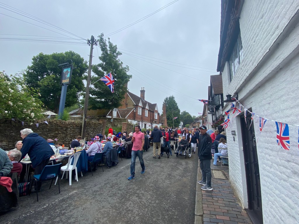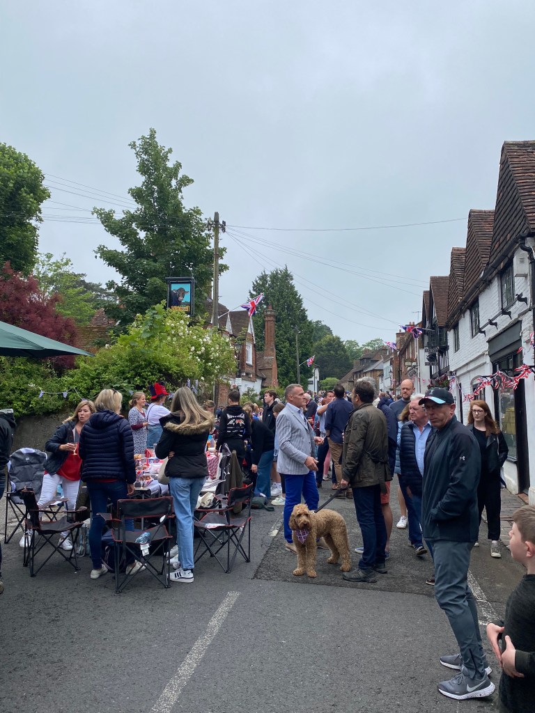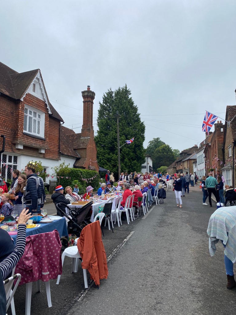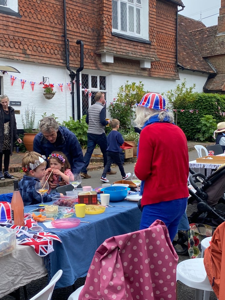 The weather held and the streets were full for the Limpsfield Village Queen’s Platinum Jubilee Street Party on Sunday 5th June. What an incredible effort everyone went to to produce such an amazing day. The tables were full; party hats and jubilee outfits were donned and the village was bedecked in flags!