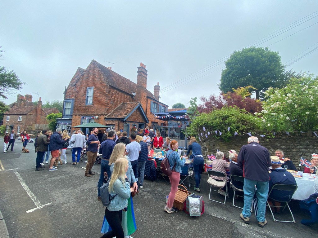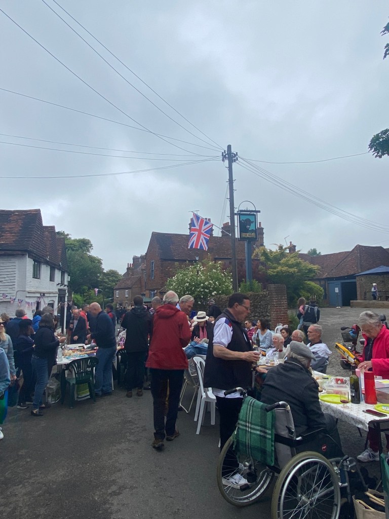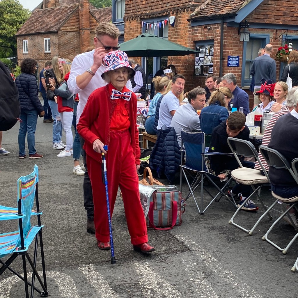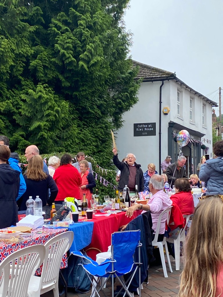 The weather held and the streets were full for the Limpsfield Village Queen’s Platinum Jubilee Street Party on Sunday 5th June. What an incredible effort everyone went to to produce such an amazing day. The tables were full; party hats and jubilee outfits were donned and the village was bedecked in flags!