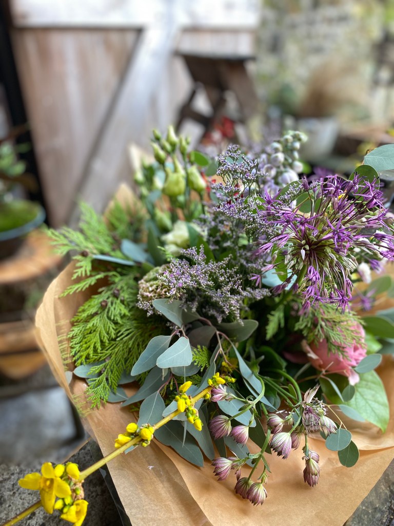 Having launched on 17th March, the girls have settled in nicely (despite it being rather chilly in their little barn) and did a roaring trade for Mother’s Day in their first week. Since then they’ve been focusing on developing a customer base for their beautiful arrangements of locally grown and seasonal flowers, as well as expanding their range of potted plants and other shop items.