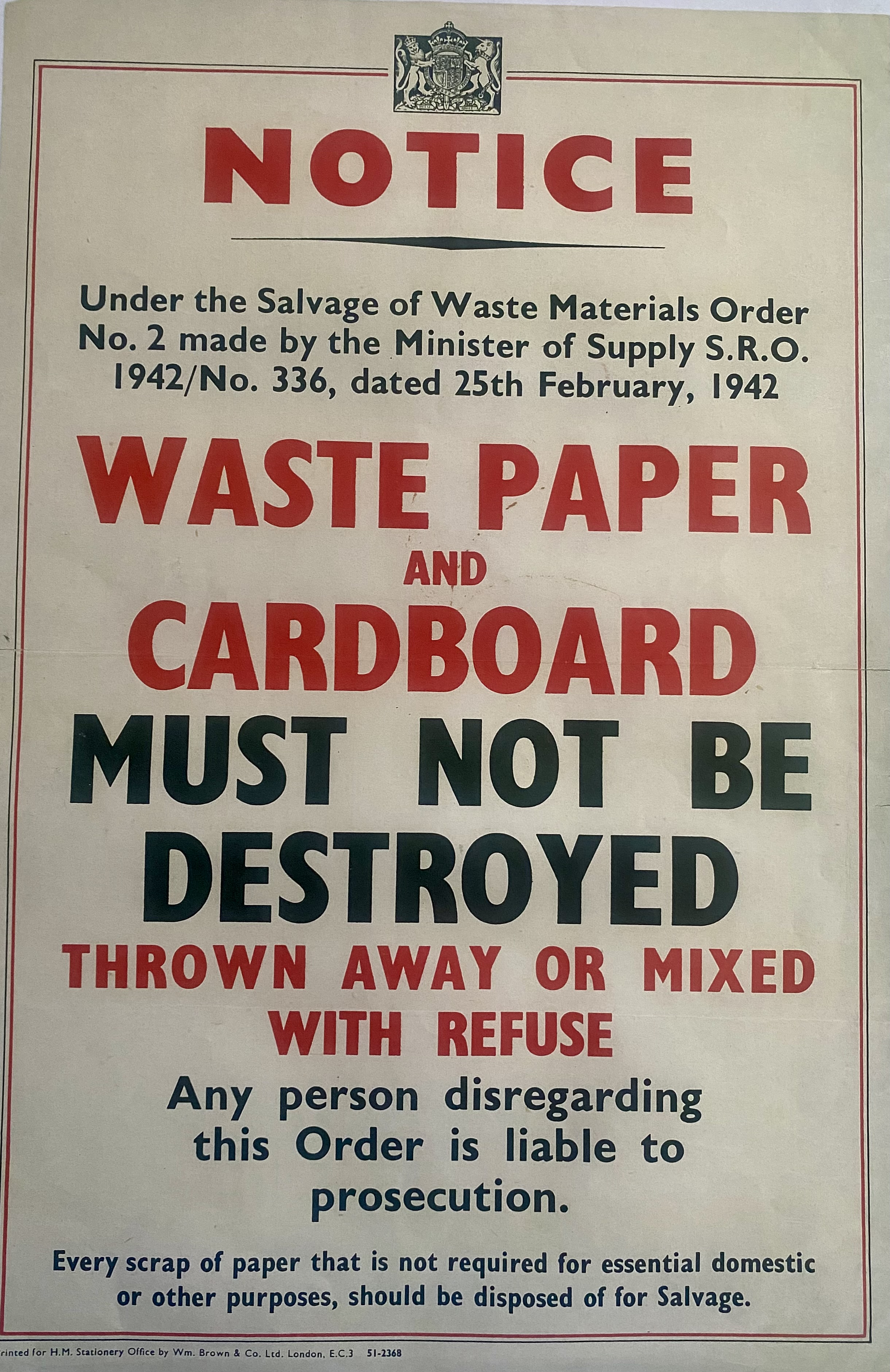 - Paper and cardboard were gathered in large quantities and repurposed for packaging munitions, producing government pamphlets, and manufacturing new paper goods. Schoolchildren were often involved, collecting waste paper from neighbours and businesses.