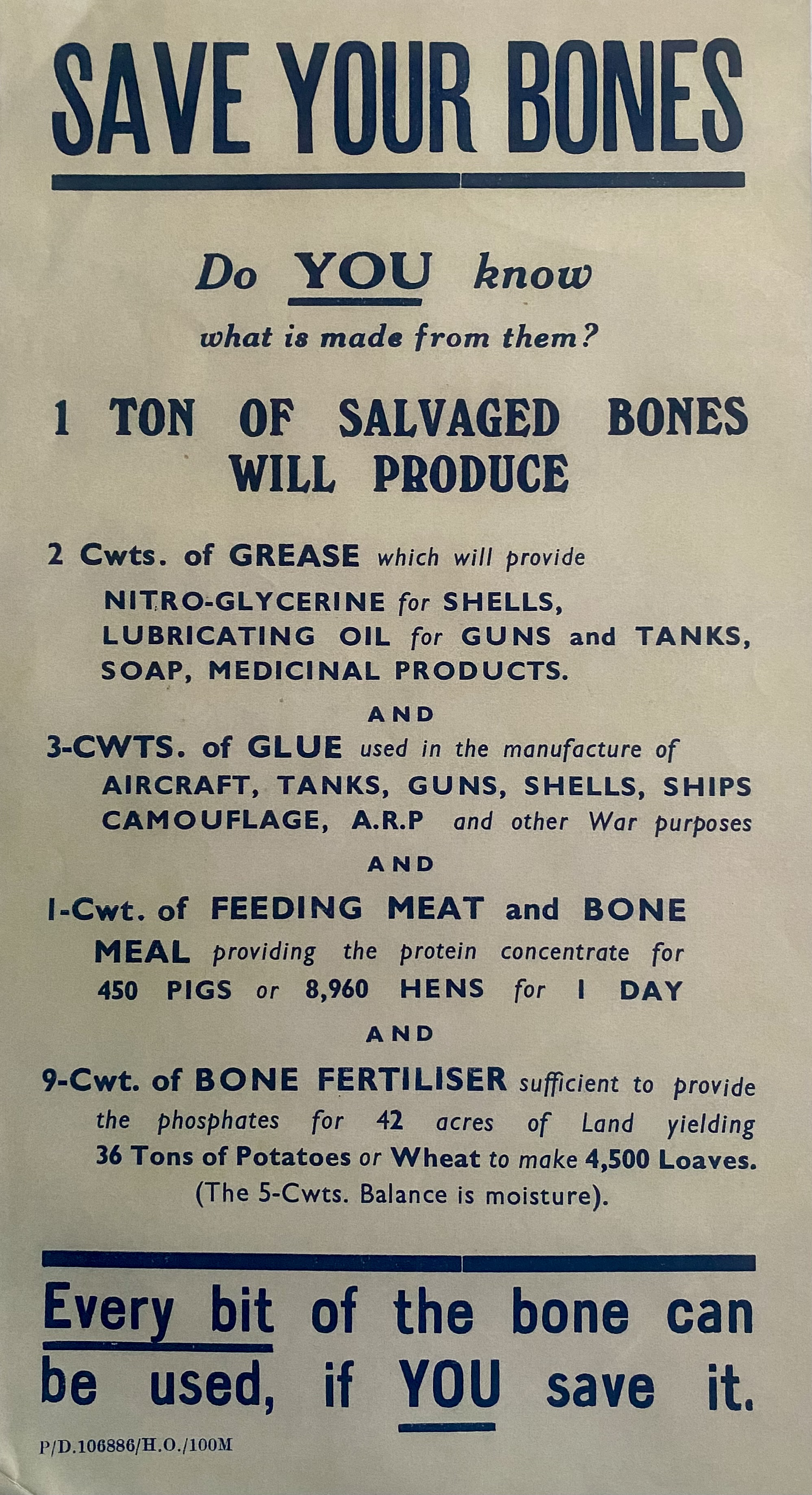 - Bones from cooking were in high demand. These were boiled down to extract glycerine, a key ingredient in explosives such as nitroglycerine. The remaining bone material could also be used to make glue or fertiliser.