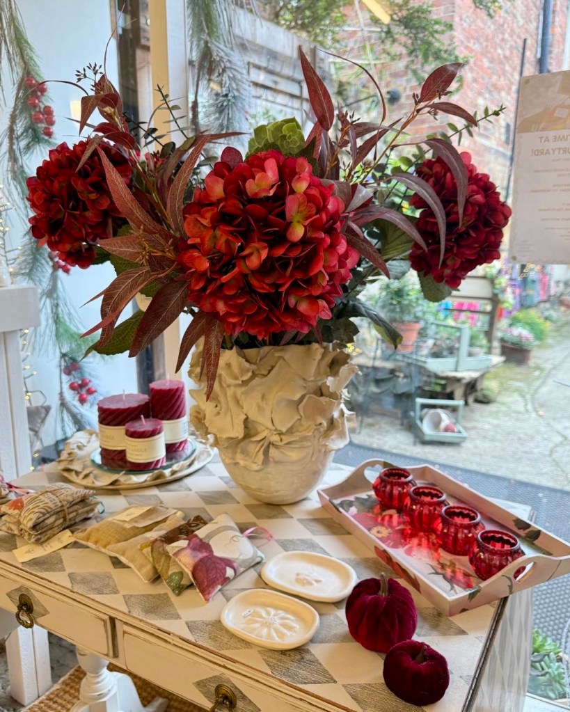 The smaller shop is now a floral haven, brimming with faux flowers, wreaths, Christmas arrangements, potted plants, cards, and even a few fresh wreaths. The walls feature vibrant work from local artists, adding to the cosy, creative vibe.