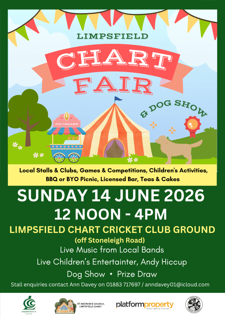 Heads up – Chart Fair is Sunday 14 June and Limpsfield Village Fete is Saturday 20 June.