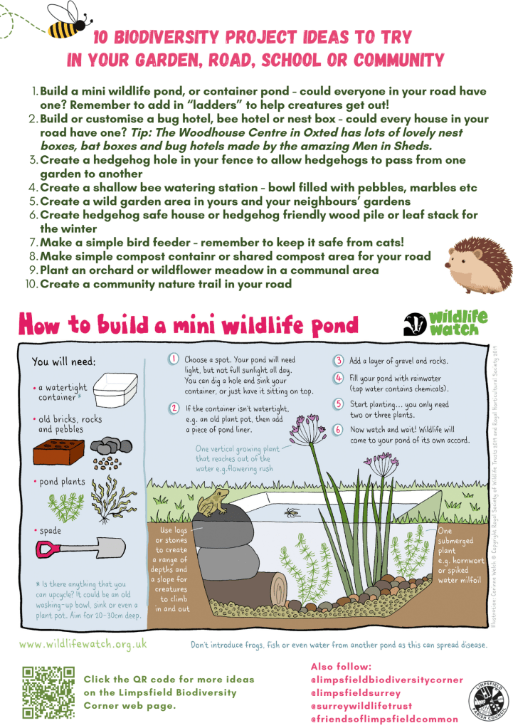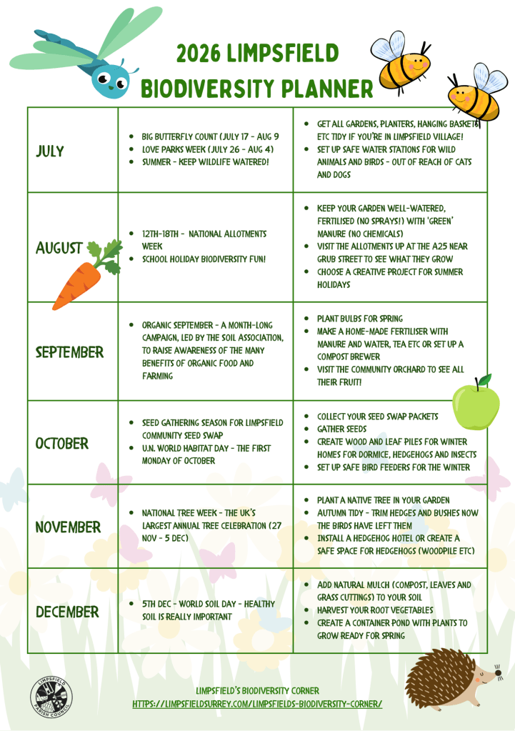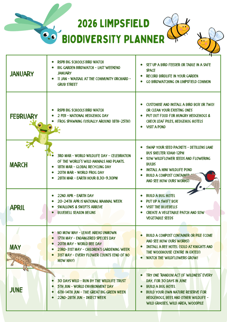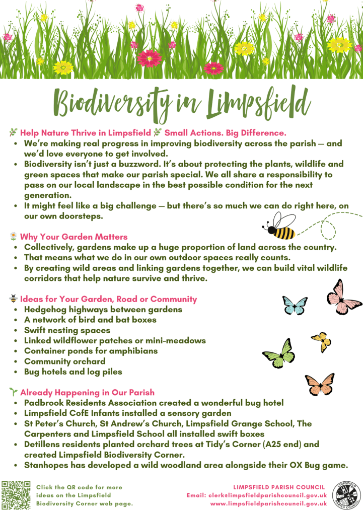 Working alongside The Limpsfield Club, the National Trust ranger and Limpsfield Parish Council, we are ramping up our efforts to help biodiversity thrive by sharing ideas with the local community.